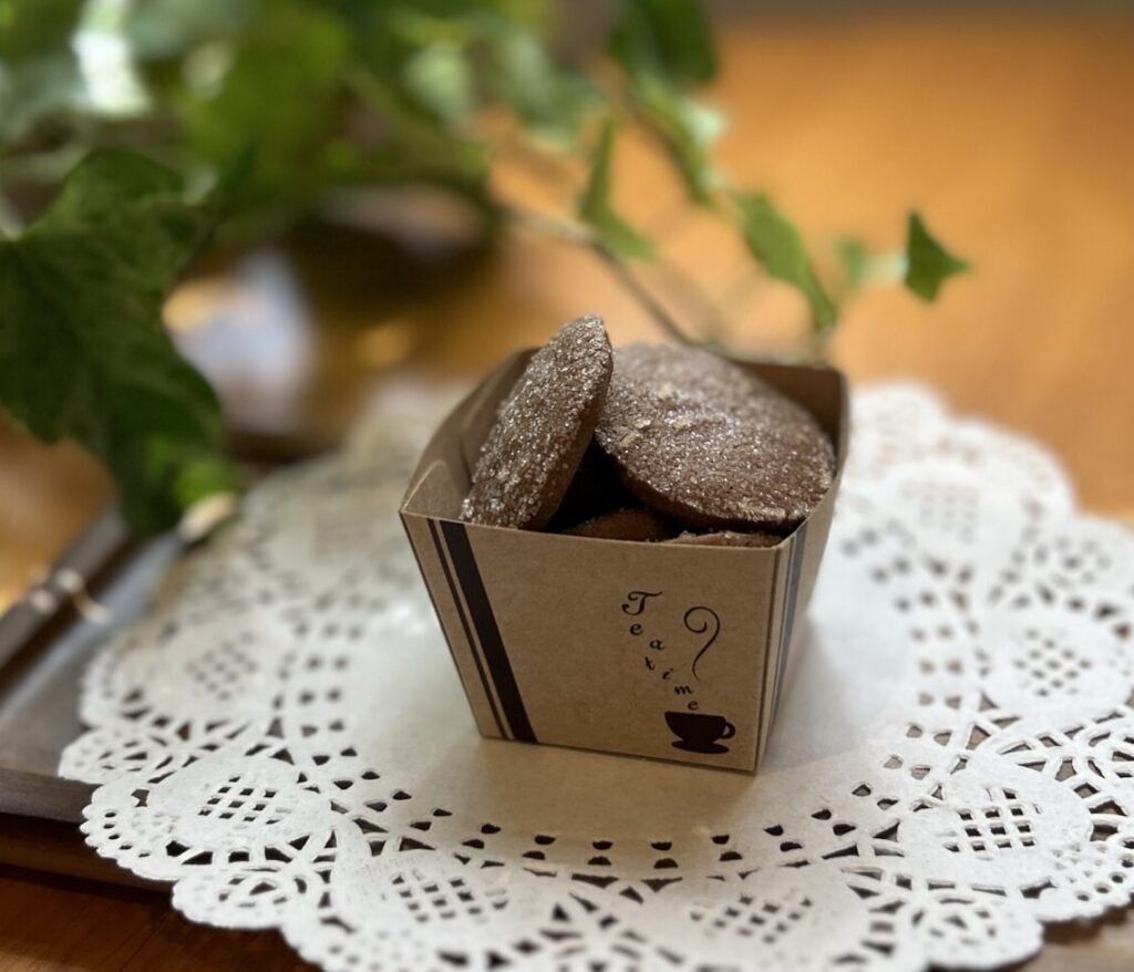 ココアの風味たっぷりのサクサククッキー。グラニュー糖をまぶして、ココアのほろ苦さとお砂糖の甘さのバランスを楽しめるように仕上げました。